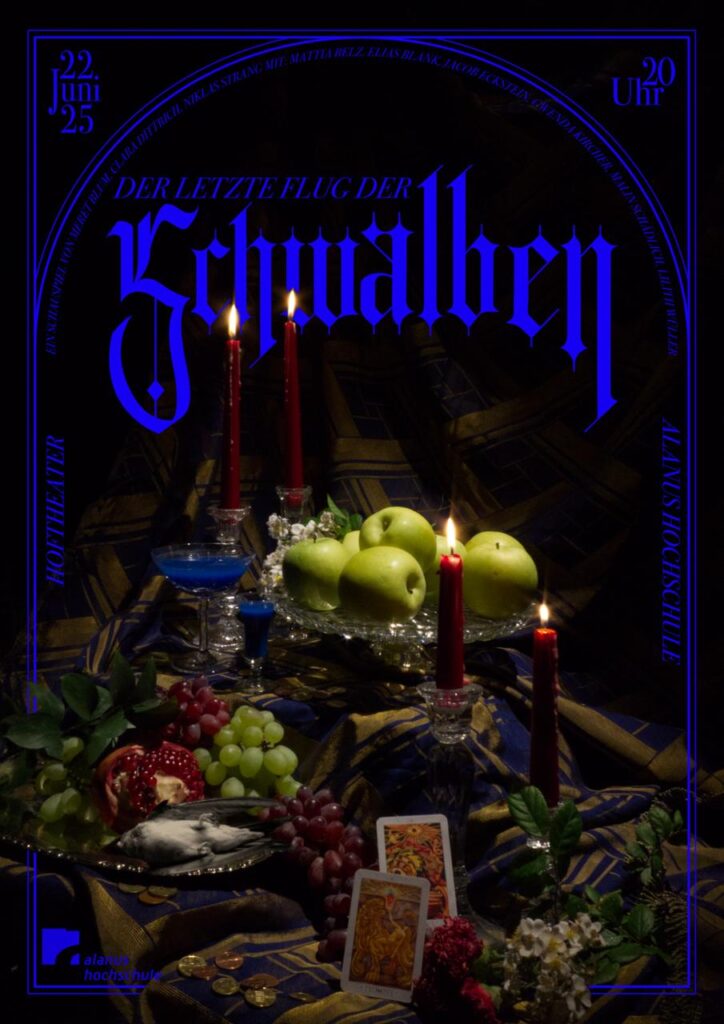 Auch Götter sind austauschbar. Strafversetzt in eine ranzige Kneipe, ist es die Aufgabe drei gefallener Gottheiten, verlorengegangene Menschenseelen einzusammeln. Ihre Gäste geraten in ein surreales Schlachtfeld, bei dem sich der wahre Gegner nicht im Gegenüber, sondern vielmehr im Innern der eigenen Identität versteckt. Der letzte Flug der Schwalben ist ein Rausch aus sinnlichen Bildern und schnellen Dialogen. Und am Ende gibts für alle die ganz grosse Erlösung. Oder zumindest eine kleine. Für manche.